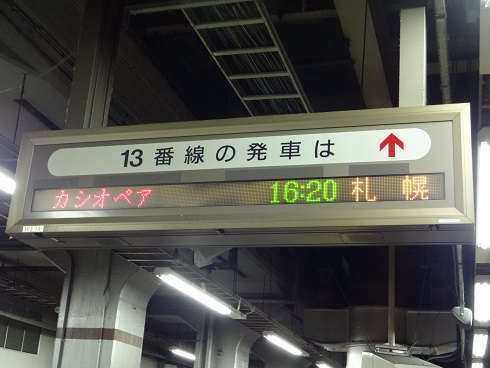 寝台特急カシオペアで札幌まで① 茅ヶ崎営業所の榎本です。 先日、運よく寝台特急カシオペアに乗車できたので写真を公開していきます。 北海道新幹線開業とともに廃止されるカシオペア。 風前の灯って感じです。 上野駅13番ホームから16:20発ですが、入線はかなり早い15:35です。 入線後、記念撮影等の時間は、たっぷりあります。 だけど・・・・ その前に、やっておくことが1つ。 3号車のダイニングカーでは「シャワールーム」の予約が始まっています。 この日は、発車時にはシャワーの予約はすべて売り切れになっていました。 恐るべし・・・・・・・・。 展望タイプのラウンジカー。下り列車は、機関車の後ろになってしまいます。 実は、今回のカシオペア乗車は2回目なのですが以前乗車した時、 ラウンジカーがついてないというショッキングな事件がありまして・・・・・。 まあ、貴重と言えば貴重なんですけど。ショックでした(2009年10月の写真) 今回の部屋は、スタンダードタイプのカシオペアツイン(2階個室) 2階は、眺めが良いのですが、1階よりも揺れるのと、天井が低く感じるという難点もあります。 室内には、トイレ・洗面台・BS放送のテレビ・ラジオなど設備かあります。 アメニティ類は、歯ブラシ・石鹸・タオル・ゆかたが用意されています。 上野出発後、ウェルカムドリンクサービスと、翌日のモーニングドリンクチケットをいただきました。 札幌までの所要時間は約19時間。 次回に続きます・・・・・・・。 [3回]PR