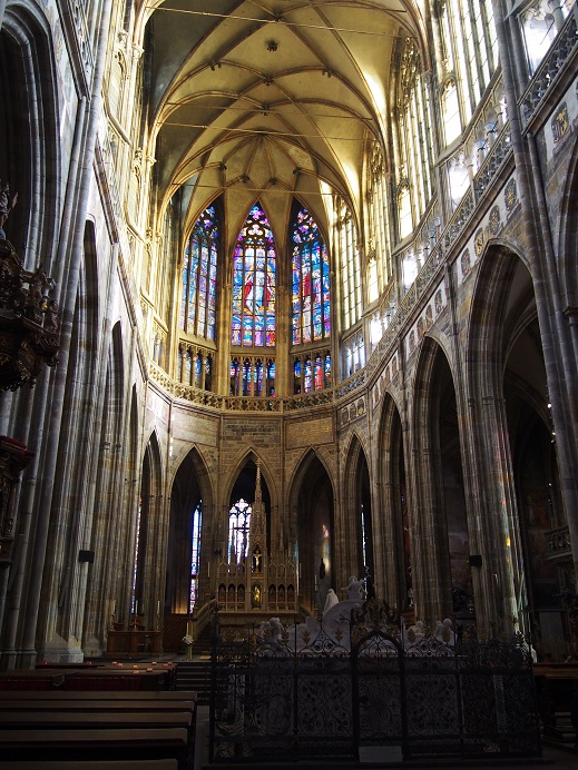 24時間制限 百塔の街、プラハ弾丸旅行⑧ 24時間プラハの旅 メインの「プラハ城」へ。 帰りの飛行機の時間が、刻一刻と迫っていくなか、ちょっと早足で。 プラハ城内で圧倒的迫力のある建物「聖ヴィート大聖堂」。 ※大きすぎて写真に収まりません。マジで広角レンズが必要です。 斜めから撮影してもちょっとイマイチ。(前の建物が邪魔) もともとは930年に造られた教会から何度も改築を重ね1344年からゴシック様式に改築。 完成したのは20世紀に入ってからの事だそうです。 内部の奥行きは64m、幅46m、高さ64mととてつもなく大きい。 ちなみに、後方部分だけなら無料で入場出来ますが、前方部分に行くためには入場料が必要です。(聖堂外のインフォメーションで購入出来ます) またステンドグラスも素晴らしいんです。 ちょうど日が差し込んできた所。なんだか幻想的に見えます。 入り口から見て左側3枚目のステンドグラスが、アルフォンス・ミュシャ(現地ではムハ) の作品です。これは必見です!! ※近くで眺めるには入場料が必要です。 王室御用達だけあり、1つ1つの彫刻が細かく写真を一枚一枚アップしていくと大変な量になるので少しだけ。 聖ヤン・ネポムツキーの墓。約2トンの純銀で見事な彫刻となっています。 大聖堂を横から。 時計の少し上の鐘楼まで昇ることが出来ます。ということで、ひたすら螺旋階段をのぼり・・・・・。 到着。しばし景色を堪能ください。 赤レンガの屋根が美しいプラハの街並み。 先程渡ってきたカレル橋。 まあ、この辺で。 こちらは、聖イジー教会。プラハ城内で一番古い教会。 921年に完成したらしい。 聖ヴィート大聖堂を後ろから。 こちらもプラハ城内にある「黄金小路」 1597年にできたこの場所は、城内の召使たちが住んでいました。のちに錬金術の職人たちも澄み始め「黄金小路」と名付けられたそうです。 22番の青い建物は、作家の「フランツ・カフカ」が仕事場兼で住んでいた家です。 プラハ城の衛兵さん。 1時間に1回交代式を行うのですが、正午の交代式は音楽隊のファンファーレから始まり大々的に行われます。 見物客が多いので早めに正門近くに待機しておくことをオススメします。 (出遅れたので写真に収めることができませんでした) 微動だにしないプラハ城の衛兵。 ということで、急ぎ足でのプラハ城は見学終了。 ※まだまだ宝物館とかギャラリーとかいろいろ見どころはあります。 ゆっくり・じっくり見学すると、丸一日かかります。 では、再び旧市街へ引き返します(次回へ) [0回]PR