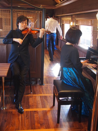 ヴァイオリンとピアノの生演奏を聴きながらの優雅な食事時間になっていきます。