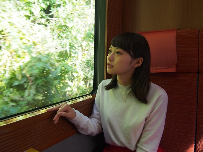 時間があえばオススメの車両です。 一般席は、写真では分かりにくいのですが、自然に視線が窓にいくように角度が5度窓側に向いています。